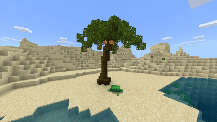 Palm Trees/Desert Palm Trees/Dead Trees/Swamp Willow Tree – Palm trees spawn on beaches and shores, while desert palm trees and dead spawn in the desert. Swamp willow trees spawn in the swamp.