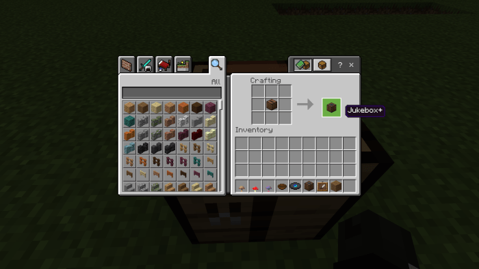 Two other new blocks, the Sawmill and Jukebox+ an also be crafted. Sawmill with 6 cobblestone and 1 iron ingot, it helps a lumberjack restock. Jukebox+ is crafted with a jukebox anywhere.