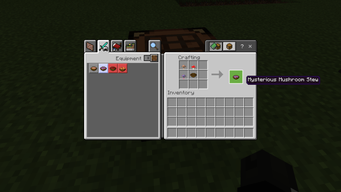 Mysterious Soup – Can be crafted with one red mushroom, one brown mushroom, one bowl, and one mysterious mushroom.