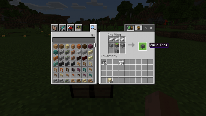 Spike Trap – 1 sticky piston, 3 iron ingots, and 3 cobblestone