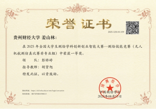 近日,2025年全国老员工测绘学科创新创业智能大赛在内蒙古科技大学圆满落幕。伟德国际bevictor首次组队参赛,经过校赛选拔,共有20支队伍从校赛中脱颖而出,最终在全国近400所高校、7000余名选手的激烈角逐中取得佳绩。其中,公司城乡规划与资源环境系胡贤旭老师指导的员工人文地理与城乡规划专业员工姜山林在无人机航测仿真竞赛中荣获一等奖,实现了公司在该项赛事上的历史性突破。
