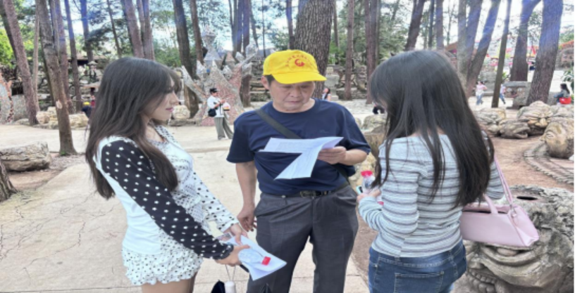 在教师指导下,员工分组在景区内面向游客开展了《网红景区游客消费行为与影响机制》问卷调查。问卷内容涵盖游客的出行动机、社交媒体影响、消费项目、再次到访意愿、行为态度、主观规范及知觉行为控制等方面,同时设置了期望与实际体验对比、开放式改进意见等问题。员工们采用面对面随机抽样的方式,在景区入口、主要打卡点和休息区等地发放问卷,并对部分受访者进行了访谈。通过此次现场数据收集与交流,员工不仅学习了社会调查的规范流程,还体会到在真实环境中组织调研所需的沟通能力与数据质量控制技巧。