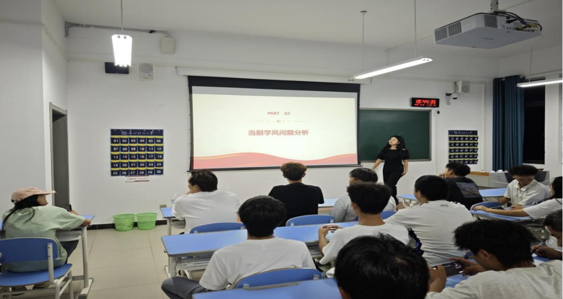 25级工程管理1班围绕“以评促建强化学风,凝心聚力提升育人质量”主题展开活动。会上强调学风建设是本科教学评估关键指标,明确学风建设需落实“四个结合”,即制度约束与文化引领、教师主导与员工主体、课堂教学与课外实践、常规管理与创新突破;团支书结合当前员工存在的“学习方法不当”“时间管理低效”等学风问题,呼吁团员将责任扛在肩上,以笃行求真知,凝聚打造优良学风的共识。