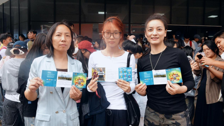 知识答题环节成为全场焦点。同学们参与热情极高,大家纷纷拿出手机认真作答,在轻松互动中了解粮食安全知识,体悟粮食安全的重要性。获得答题奖品的同学们纷纷在签名墙前打卡留影,成为现场一道清新亮丽的风景。