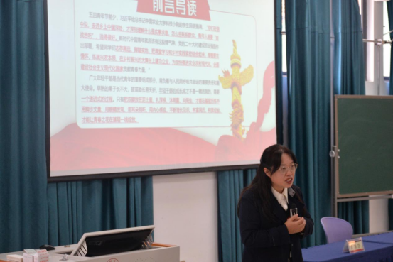 魏媛以习近平总书记给中国农业大学科技小院员工的重要回信精神为引领,围绕“扎深根、沐雨露、向阳生、赴基层”四大主题展开讲授,并结合沈浩同志扎根小岗村、推动乡村从“温饱”走向“富裕”的奋斗历程,黄文秀同志主动投身扶贫一线、为脱贫攻坚献出青春的感人事迹,以及谷文昌同志带领群众治沙造林、将东山从“荒岛”变为“宝岛”的实干精神,生动阐释了“基层是青年成长沃土”的深刻内涵,鼓励同学们要传承和发扬“自找苦吃”的精神,始终心系人民,主动沉下身段、深入基层、体察实情,在急难险重任务中锤炼担当、增长才干。