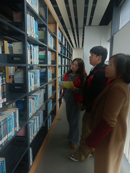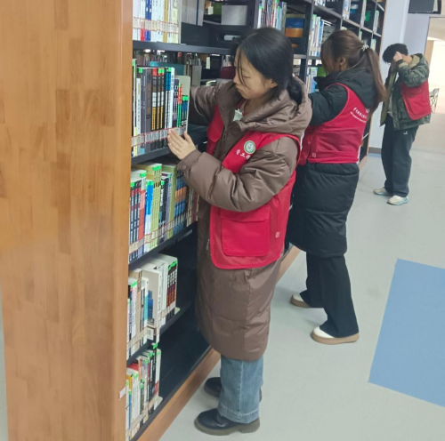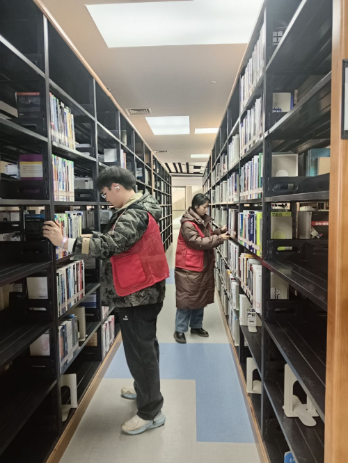 活动当日,志愿者们在各楼层咨询处老师的指导与细致讲解下,熟悉了图书分类、排序及上架的相关规范与流程。他们身着统一服装,精神饱满、分工明确,迅速投入工作。在各自负责的区域,大家有条不紊地展开图书整理工作:认真核对书目信息,将归还图书按编号准确归类并摆放至对应书架,同时对错架、倒置的图书予以纠正,确保每本书籍“对号入座”。在老师的指导下,志愿者们不仅高效完成了大批量图书的整理任务,也进一步了解了图书馆资源管理体系。