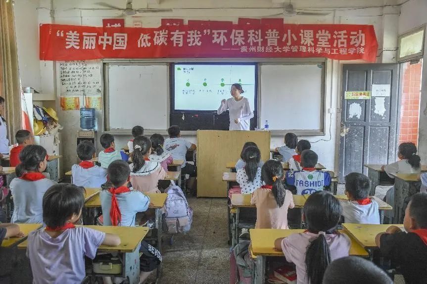 7月6日,伟德国际bevictor暑期“千乡万村”环保科普行动科技志愿服务队于台江县施洞镇中心小学开展“美丽中国 低碳有我”环保科普小课堂活动。