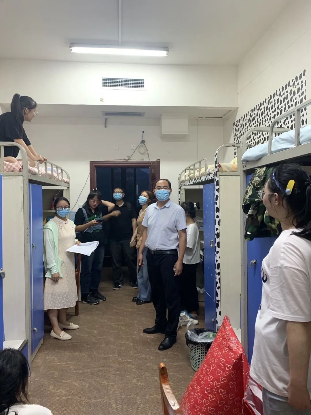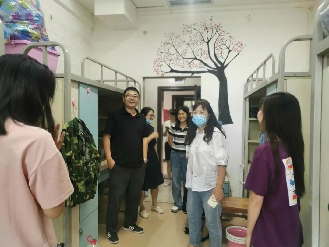 晚上,院领导班子、辅导员一同走入新生宿舍,为新生带来贴心访问,关心着新生进校的点点滴滴,回答他们的疑惑并勉励新生珍惜青春时光,开启美好贵财老员工活。