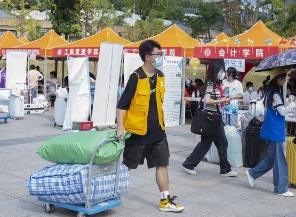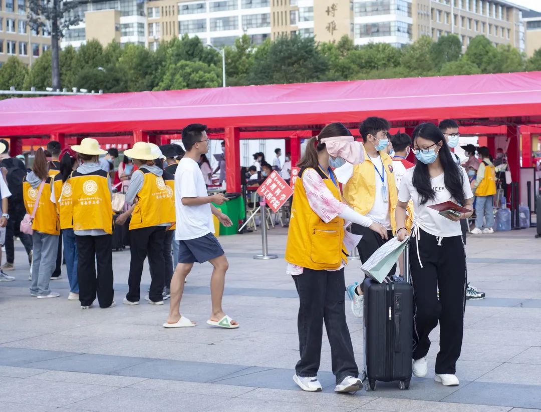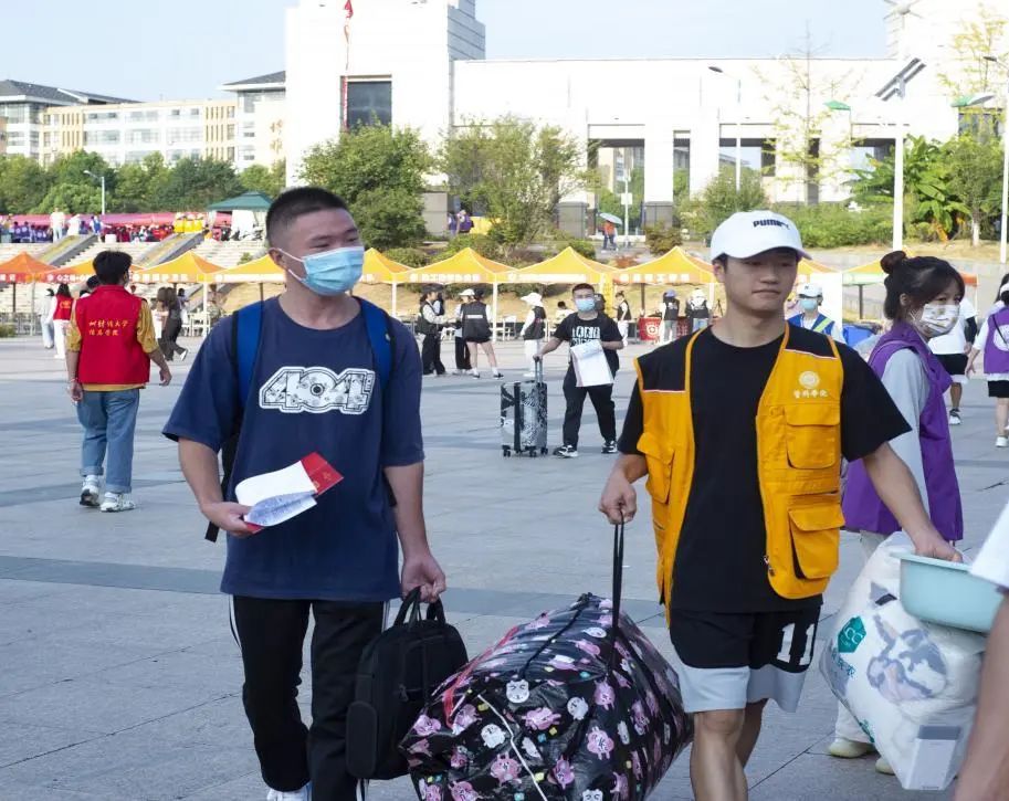 25日12时,大量新生涌入报到现场,人声鼎沸,到处都有迎新工作者忙碌的身影,有的帮忙新生搬拿行李,有的引导新生完成报到流程,办理相关手续,并耐心为新生解答疑难,迎新工作井然有序。