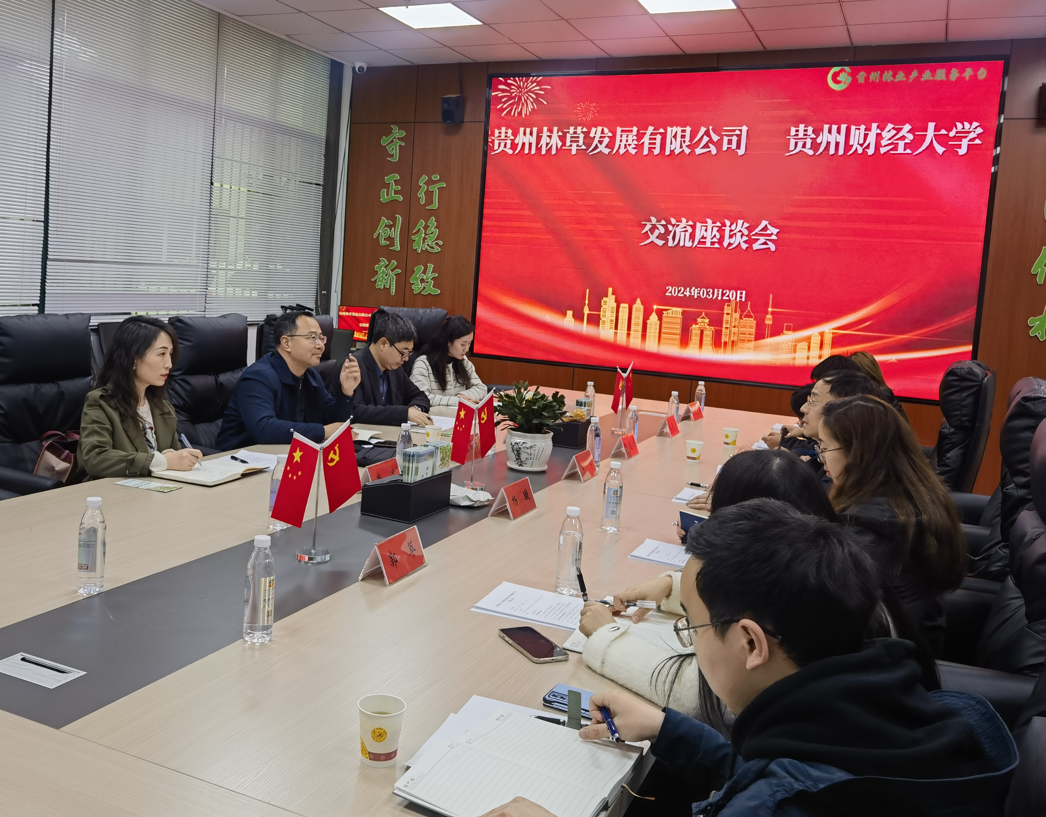 刘学首先对公司一行到访表示热烈欢迎,并详细介绍了贵州林业产业服务平台运营中心基本情况及平台建设情况。张军就公司研究生教育情况及校企融合相关工作进行介绍。贵州多彩宝互联网服务有限公司青创部总经理张晓龙也表示目前与人社厅正筹备为毕业生自主创业搭建新的平台。郭长睿经理对员工就业实习等岗位与对方进行了交流,并热情邀请林草公司回访。双方就共同开展员工培养、参加研究生院“奋进新时代·百企进校园”活动、员工实习就业拓岗以及校企共同开展“揭榜挂帅”项目攻关等内容达成良好合作意愿。