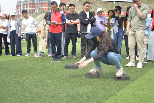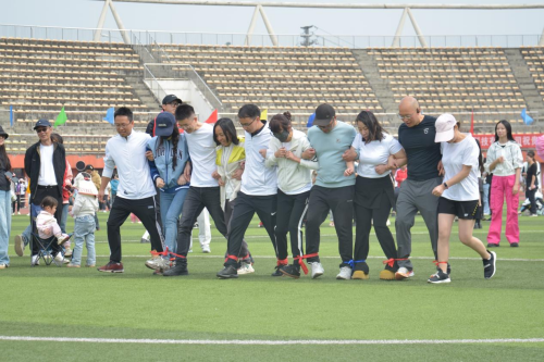 教师趣味项目为紧张的比赛增添了欢乐气氛。绑腿跑项目中,教职工们手挽手、肩并肩,喊着整齐的口号向前迈进;摸着石头过河项目中,老师们或稳健前行,或灵活跳跃,引得观众笑声连连。这些项目不仅考验技巧,更增进了团队凝聚力。